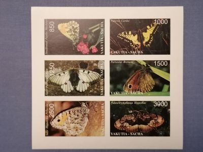 Редкость! Якутия - Саха. Бабочки. Малый блок марок. Беззубцовый.