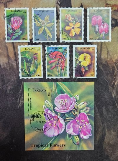 Марки: Танзания. 1994. Тропические цветы (серия с ПБ гашеные)